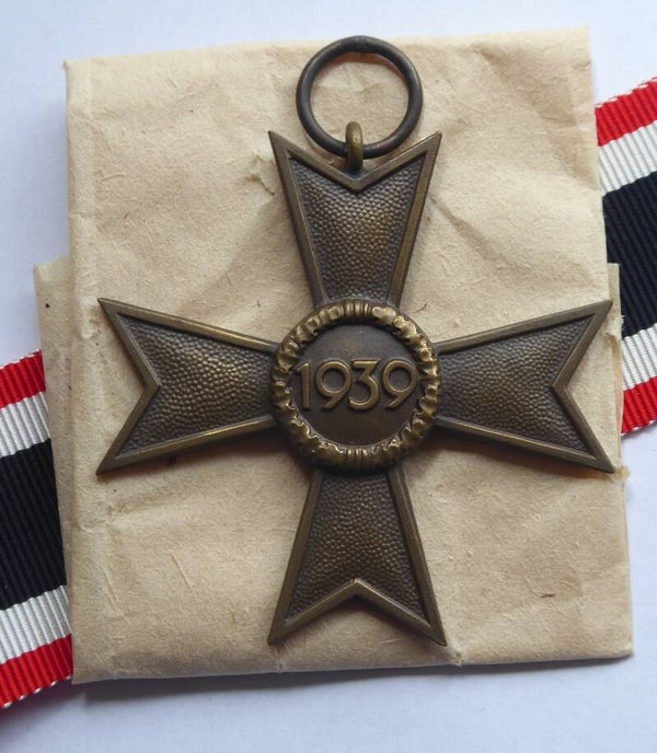 KVK 2nd Class without Swords by Deschler & Sohn, München. Buntmetall construction. The medal is marked on the ring with PKZ code "1" indicating production by D&S. Nice cross in mint unissued condition, comes with its original long ribbon and packaging. This cross originates from the famous "Deschler Hoard". Nice original mint cross! No repairs, no damage.