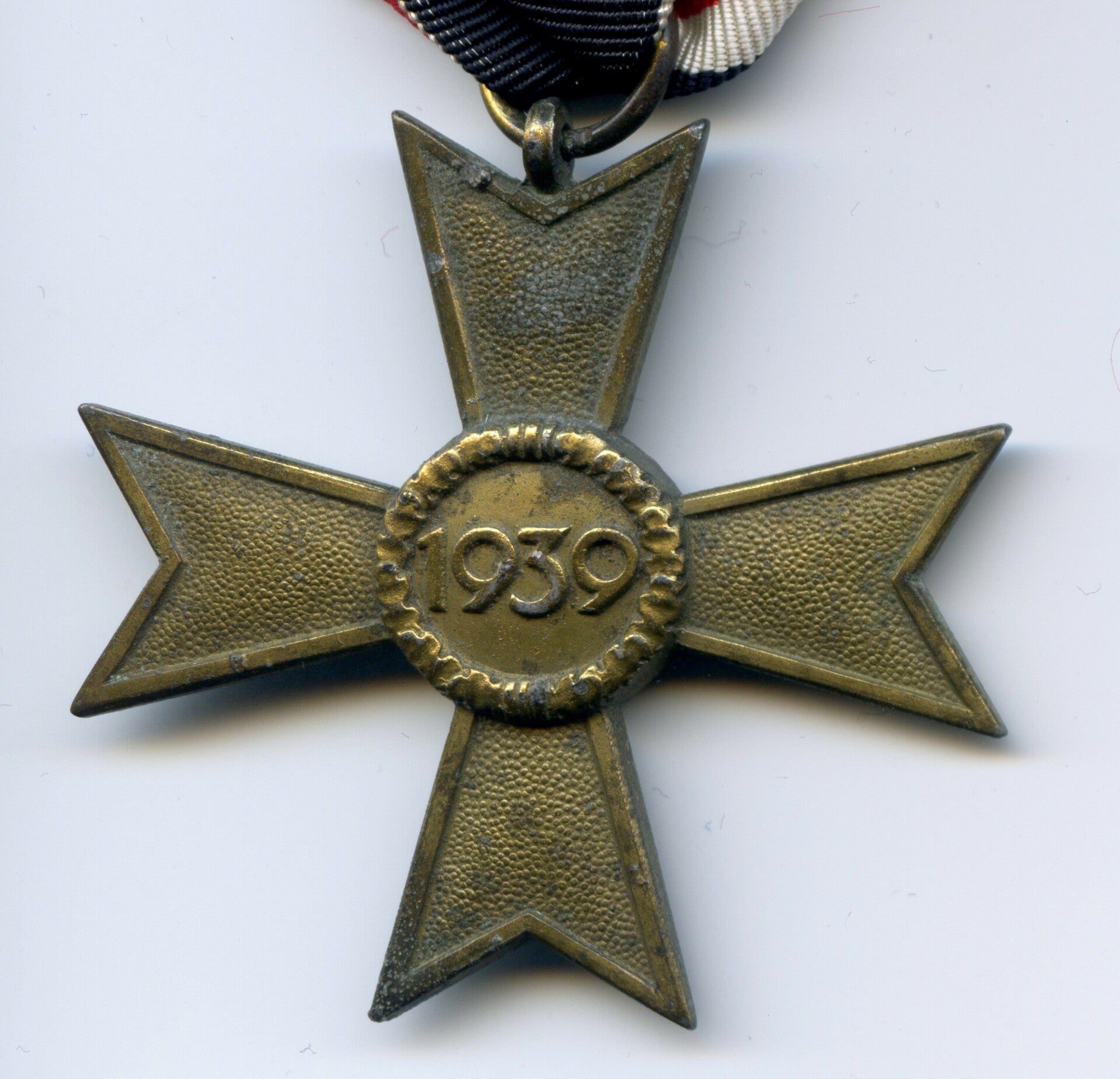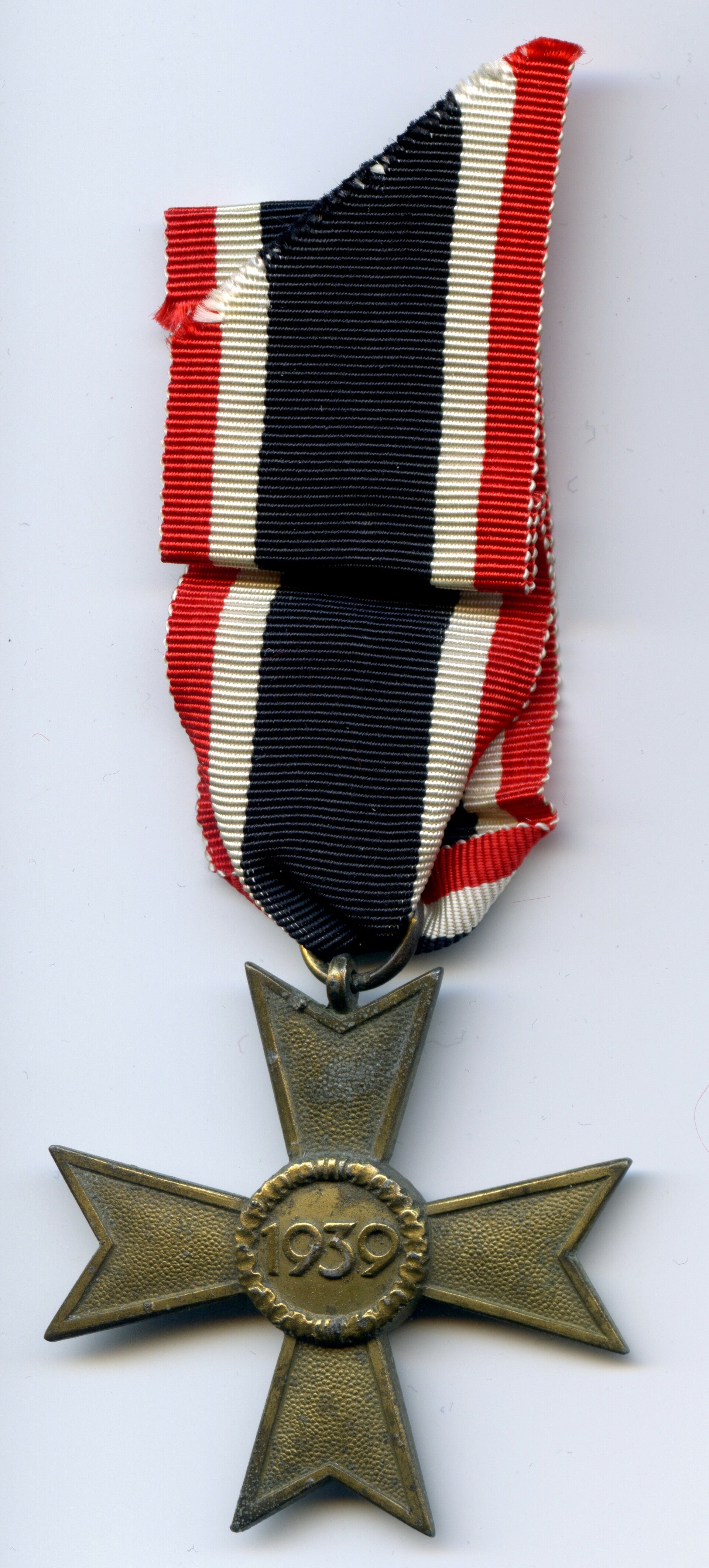 KVK 2nd Class without Swords by Carl Wild, Hamburg. Zinc construction. The medal is marked on the ring with PKZ code "107" indicating production by CW. Nice cross in worn but good condition, comes with its original ribbon. Nice original cross! No repairs, no damage.