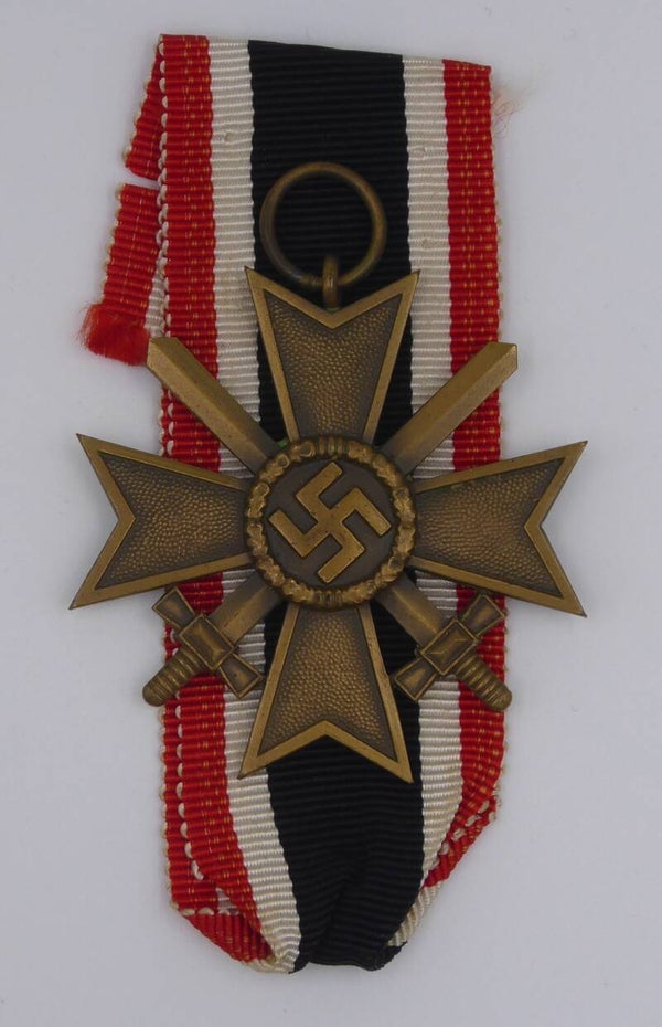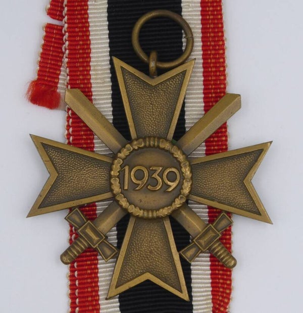 KVK 2nd Class with Swords, unmarked. Buntmetall construction. Nice cross in near mint condition, comes with its original long ribbon. Top cross! No repairs, no damage.