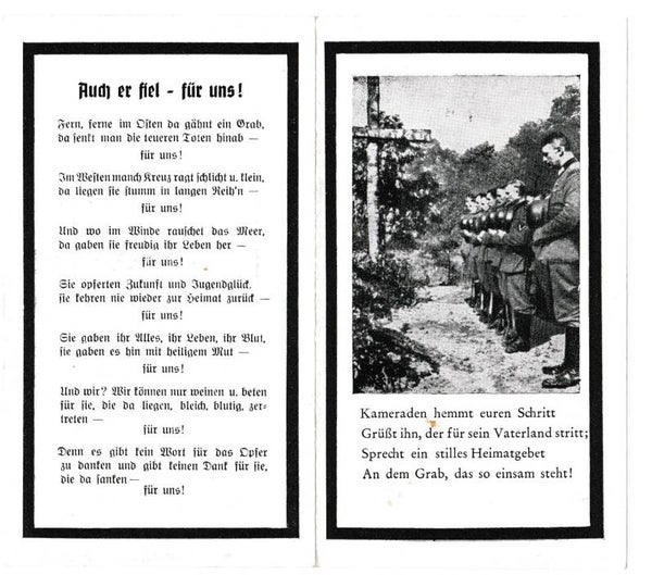Death Card to Obergefreiter Richard Spahn, Infanterie Rgt, Russia 1942