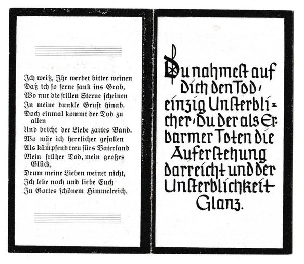 SOLD Death Card to Leutnant Franz Sagn, Gebirgsjäger Rgt, Caucasus 1943