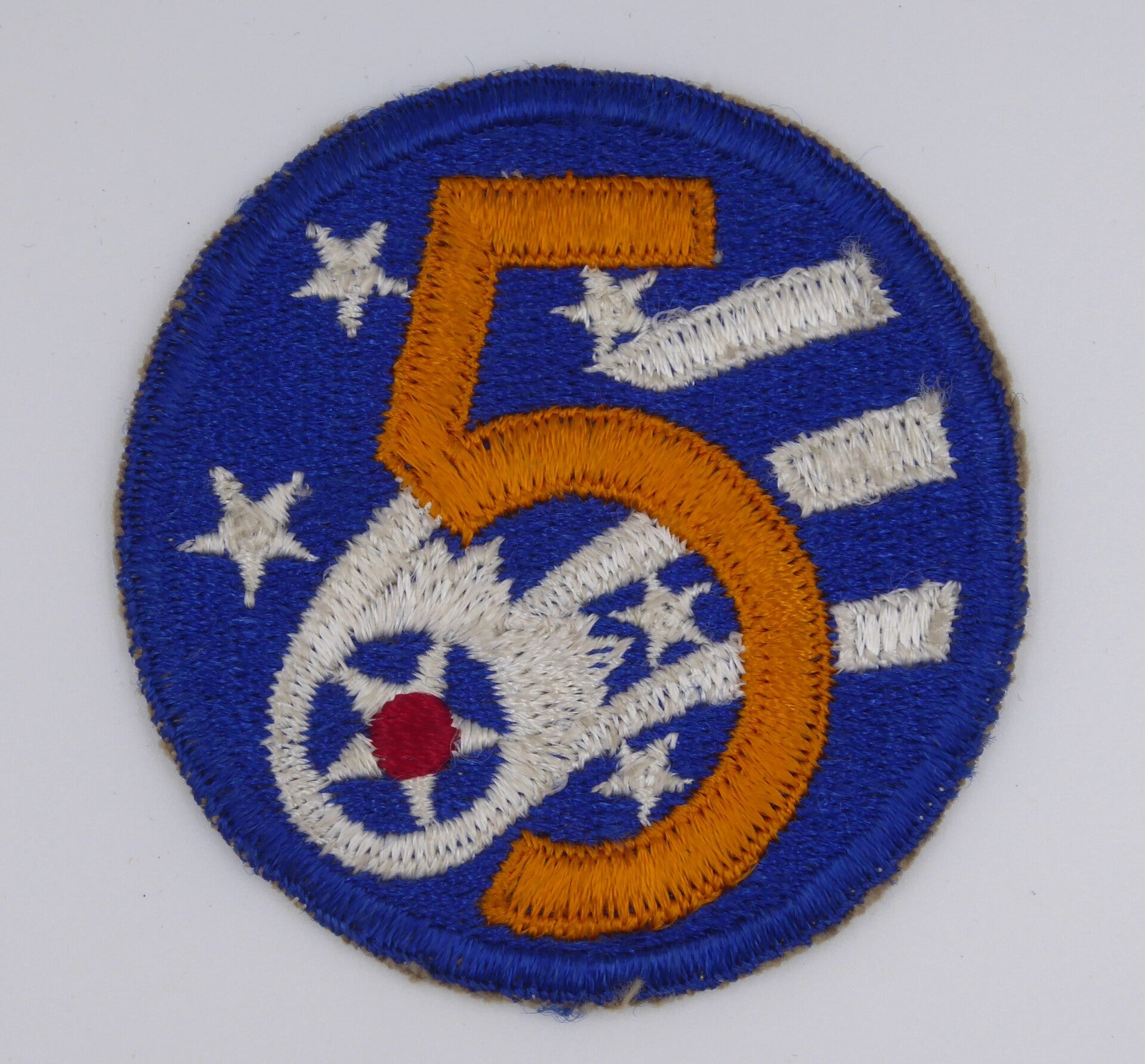 Nice WW2 original cut edge whiteback 5th Air Force Patch. Great condition! No repairs, no damage.