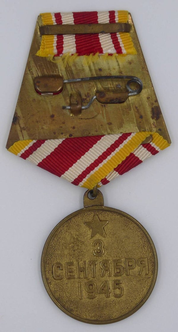 Very nice original Victory over Japan medal. The medal comes with its original singular brass suspension. The medal is of the second type and remains in a great condition! Nice Victory over Japan medal with no repairs, no damage.