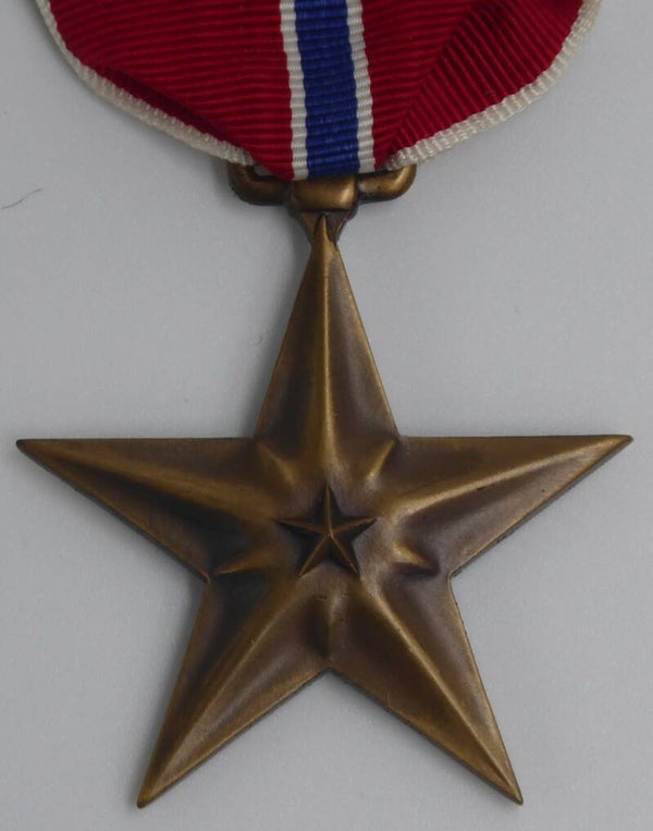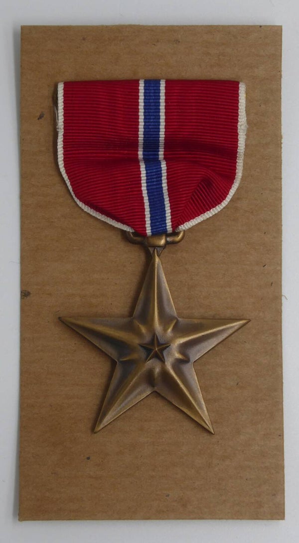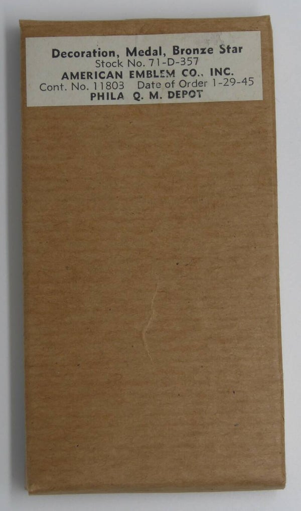 A very nice complete and original WW2 Boxed Bronze Star medal. Excellent bronze star medal from 1945 by the American Emblem Company Inc. from Philadelphia. The bronze star medal comes with a slot brooch mechanism, its original wrapping paper and brown box of issue. Excellent complete mint set! No repairs, no damage.