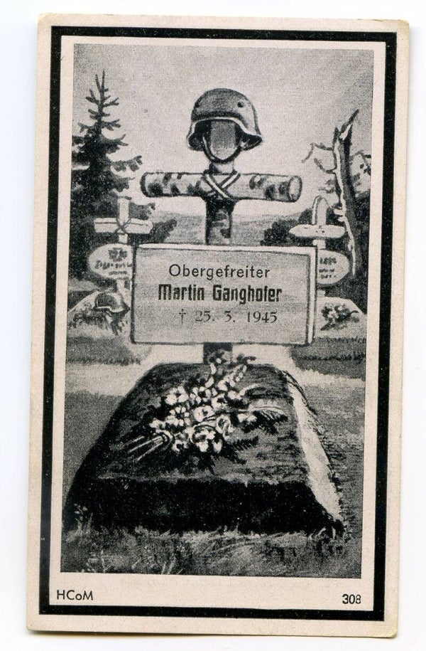 Death Card to Obergefreiter Martin Ganghofer, Fallschirmjäger Rgt, Italy 1945