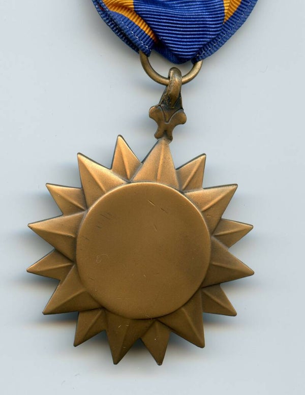 A nice original WW2 Air Medal with ribbon bar. The medal comes with a slot brooch, indicating production during WW2. Very nice medal and ribbon bar in great condition! No repairs, no damage.