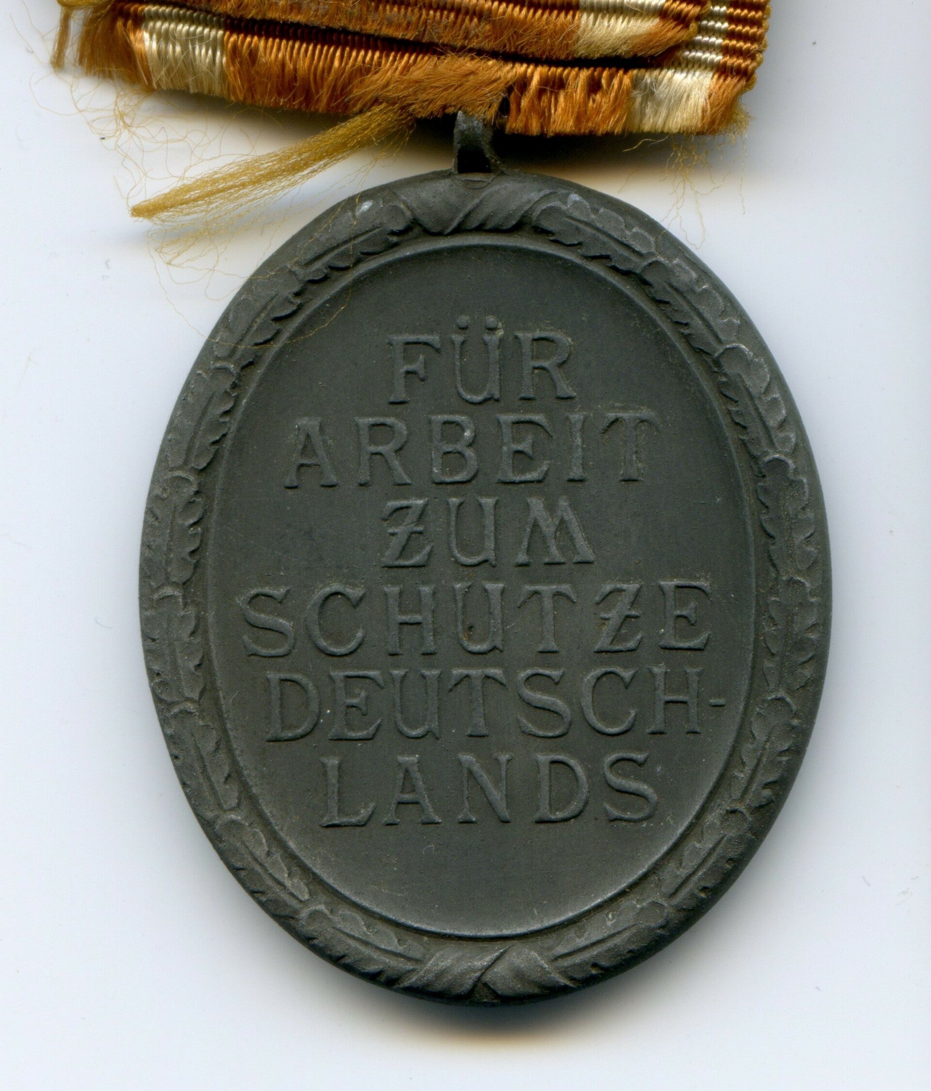 Nice Westwall medal. Zinc construction. Medal comes with its long ribbon and package by Carl Poellath, Schrobenhausen. Nice set in good condition. No repairs, no damage.