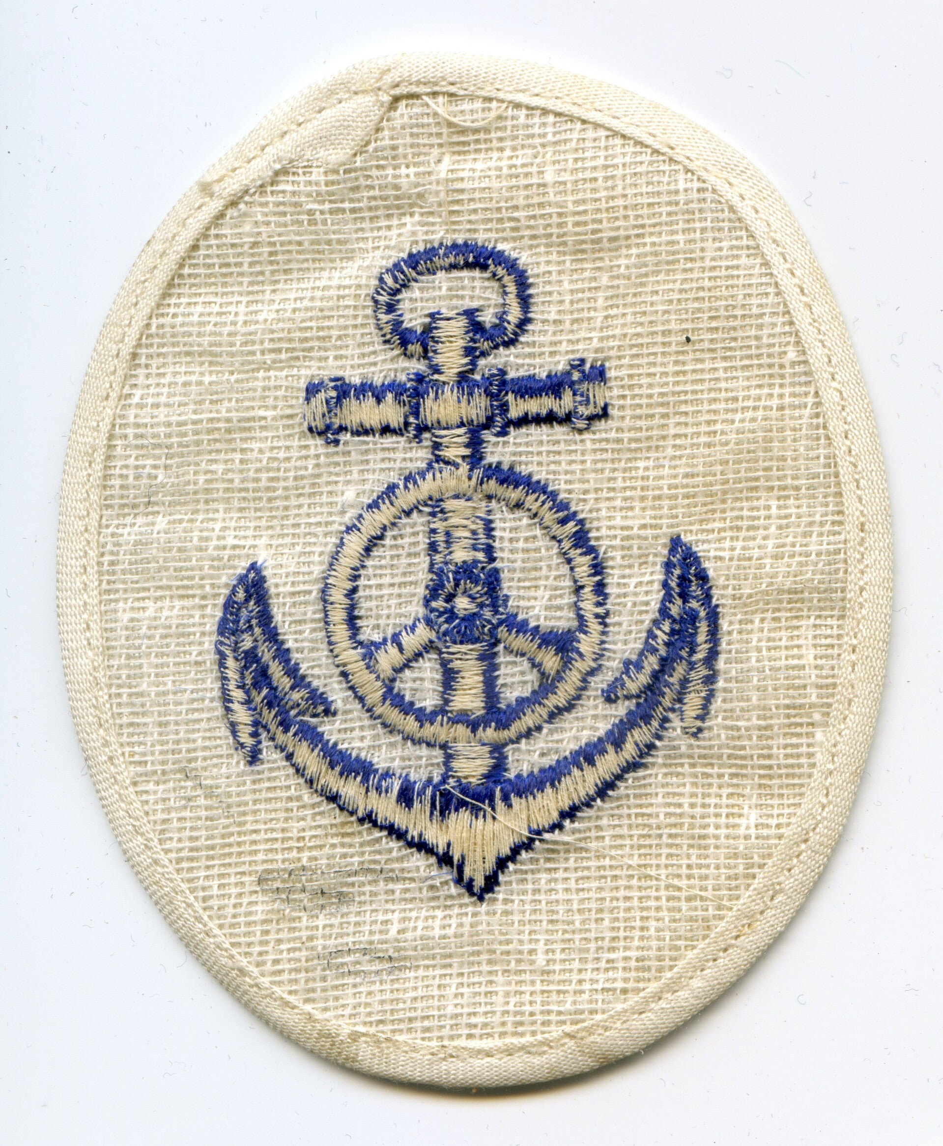 A very nice Kriegsmarine Motor Transport NCO's Career Sleeve Badge (Kraftfahrpersonal Laufbahnabzeichen). The badge is made out of machine embroiderd cloth and remains in an excellent condition. The badge is white of colour as intended for the summer uniform. Excellent NCO career badge. No repairs, no damage.