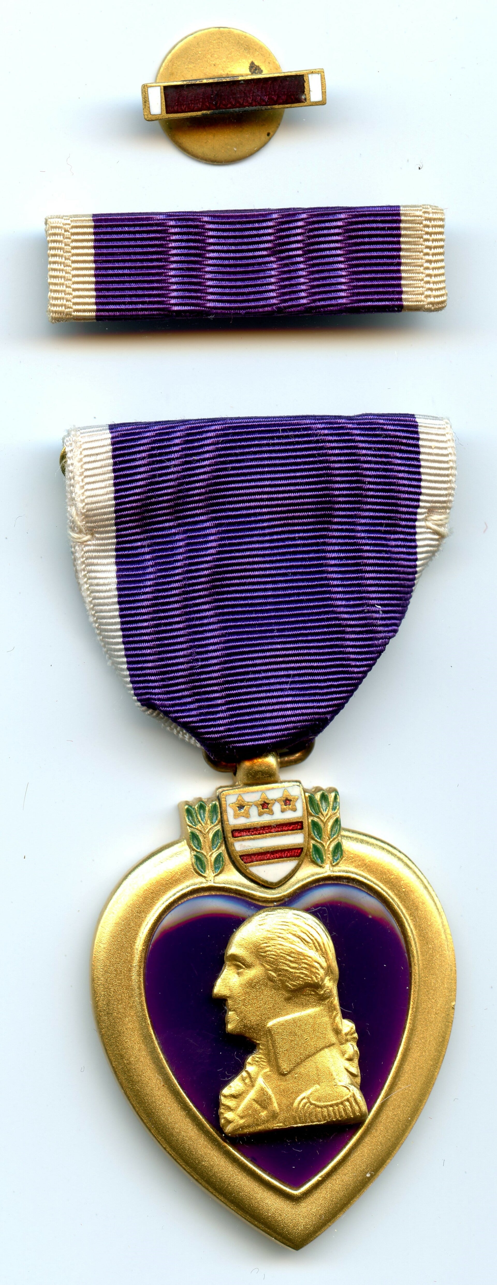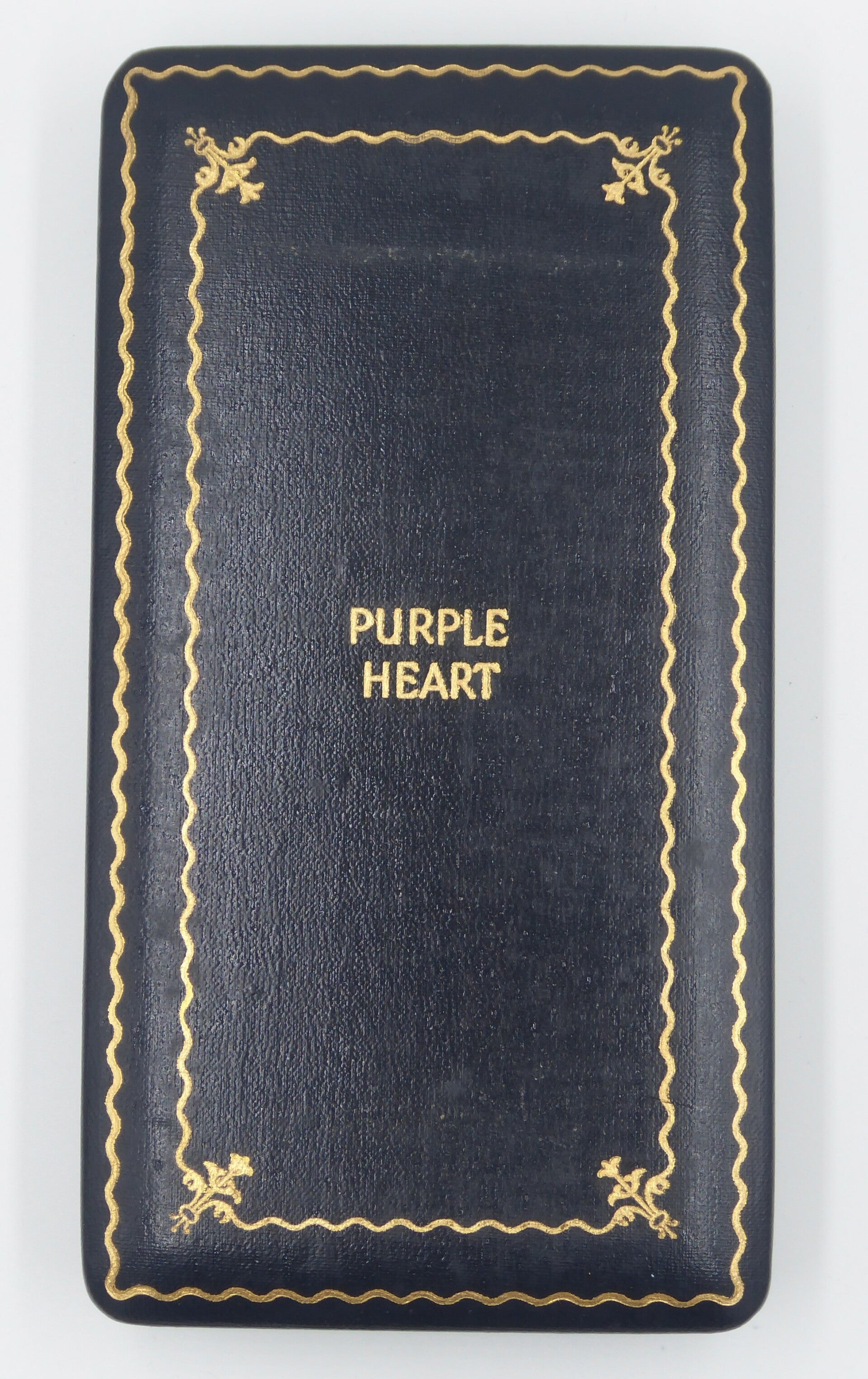 An original complete WW2 cased Purple Heart medal. The medal comes in its original case of issue together with its ribbon bar and lapel pin. The medal comes with a slot brooch, indicating production during WW2. Great set in great condition! No repairs, no damage.