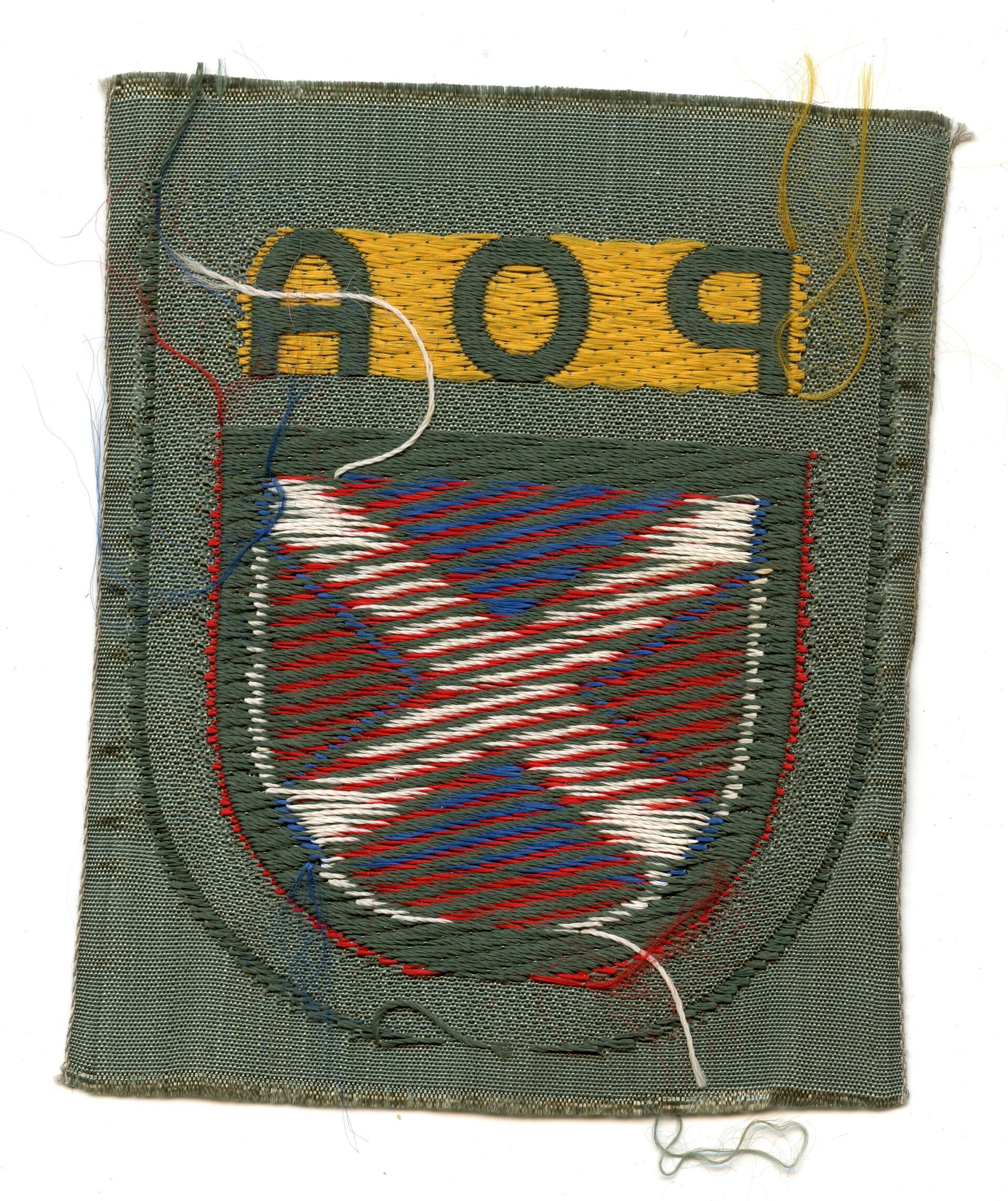 Very nice BeVo woven "POA" Volunteer Shield. The shield was worn by Russian nationals whom served within the Russian Liberation Army also known as the Vlasov Army. The shield remains in a mint and unissued condition. TOP PIECE! No repairs, no damage.