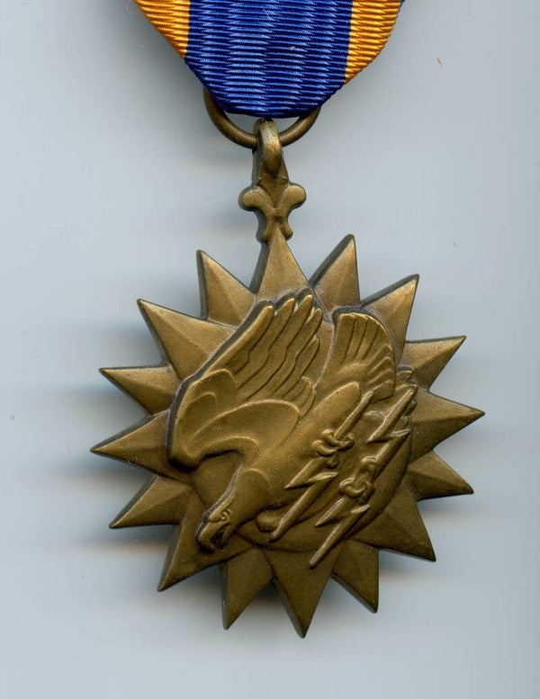 An original complete WW2 cased air medal. The medal comes in its original case of issue together with its ribbon bar and lapel pin. The medal comes with a wrap brooch, indicating production between the 1930s and 1945. Great set in great condition! No repairs, no damage.