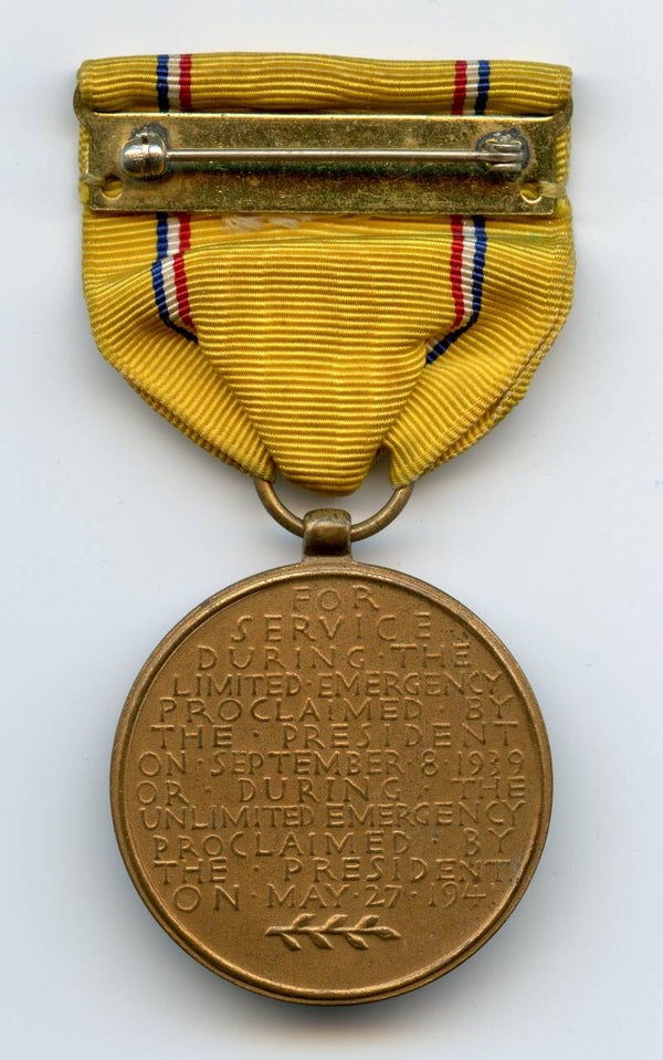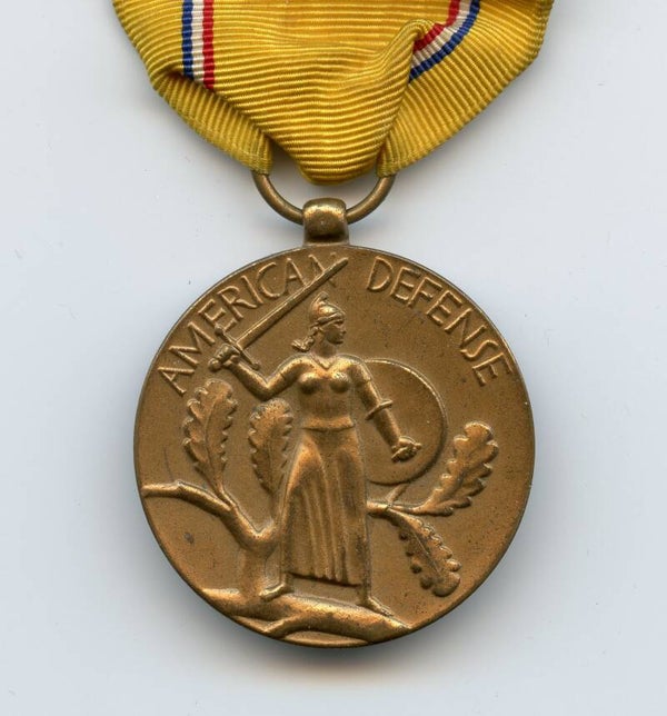 WW2 Original American defense medal. The medal comes with its period original slot brooch meganism and ribbon. The medal comes on its original box planchet. Great medal in mint condition. No repairs, no damage.
