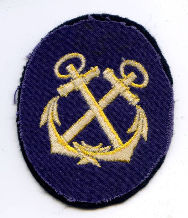 A very nice Kriegsmarine Helmsmen NCO's Career Sleeve Badge (Steuermann Laufbahnabzeichen). The badge is made out of machine embroiderd cloth and remains in an excellent condition. The badge is black of colour as intended for the regular uniform. Excellent NCO career badge. No repairs, no damage.