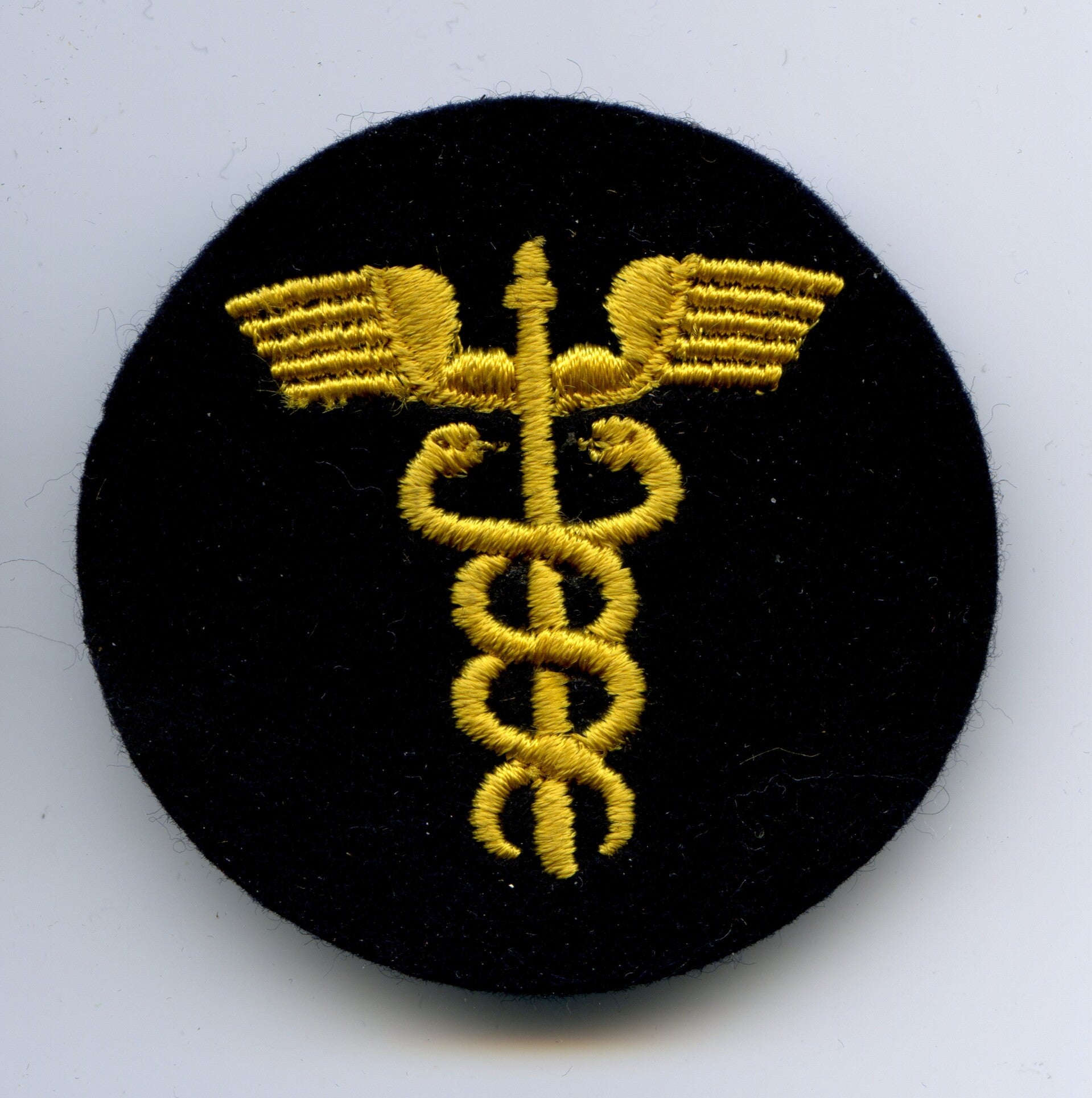 A very nice Kriegsmarine Administrative Enlisted Men Career Sleeve Badge (Verwaltungs Laufbahnabzeichen). The badge is made out of machine embroiderd cloth and remains in a good condition. The badge is black of colour as intended for the regular uniform. Excellent EM career badge. No repairs, no damage.