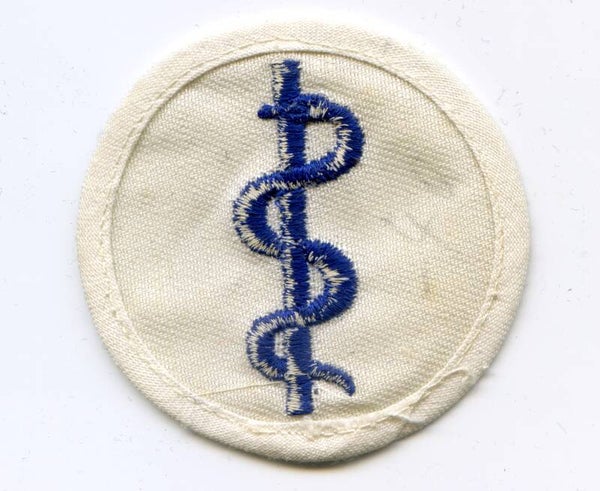 A very nice Kriegsmarine Medical Enlisted Men Career Sleeve Badge (Sanitätspersonal Laufbahnabzeichen). The badge is made out of machine embroiderd cloth and remains in an excellent condition. The badge is white of colour as intended for the summer uniform. Excellent EM career badge. No repairs, no damage.