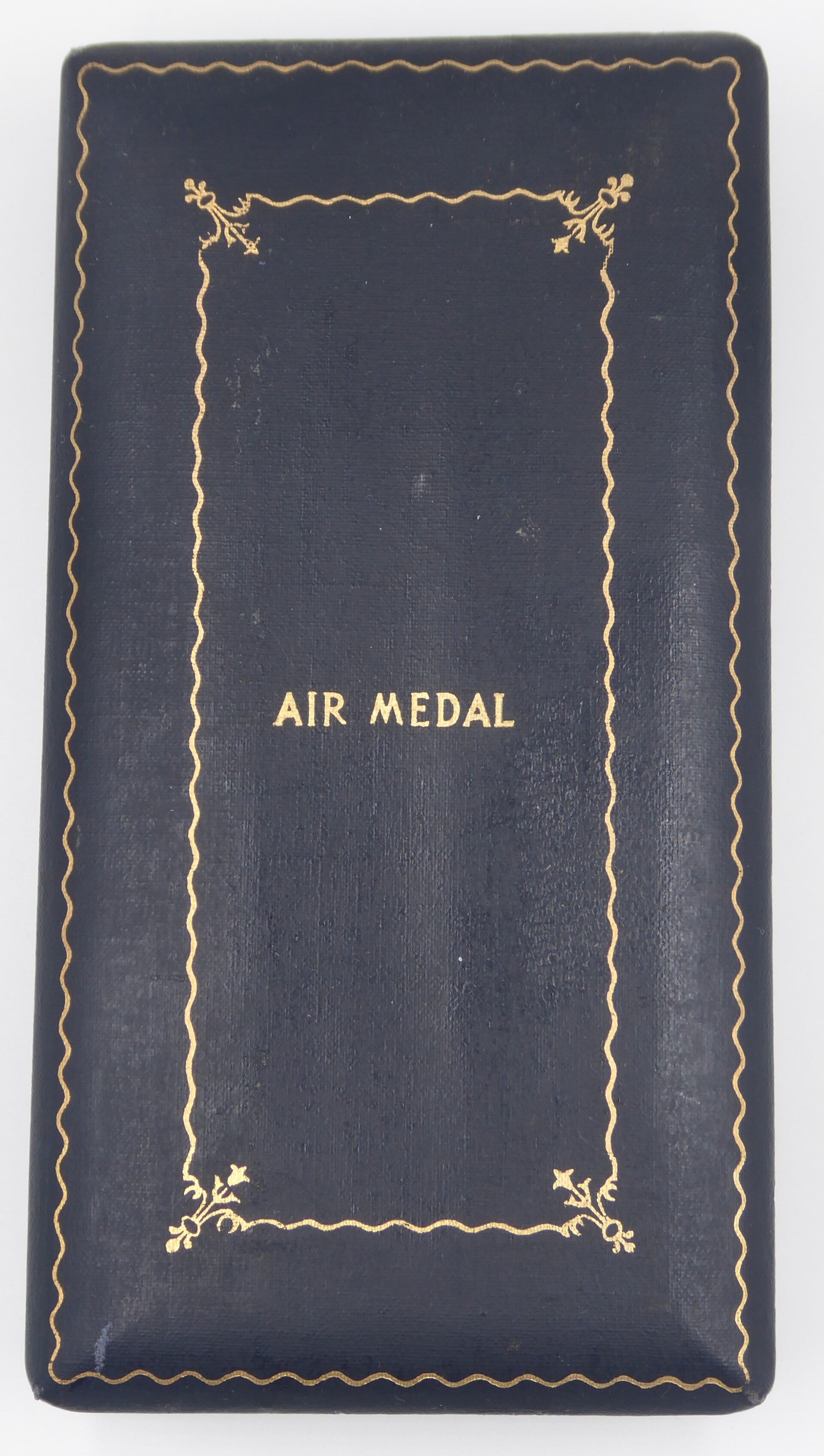 An original WW2 cased Air Medal. The medal comes in its original case of issue. The medal comes with a wrap brooch, indicating production during WW2. Great set in good condition! No repairs, no damage.