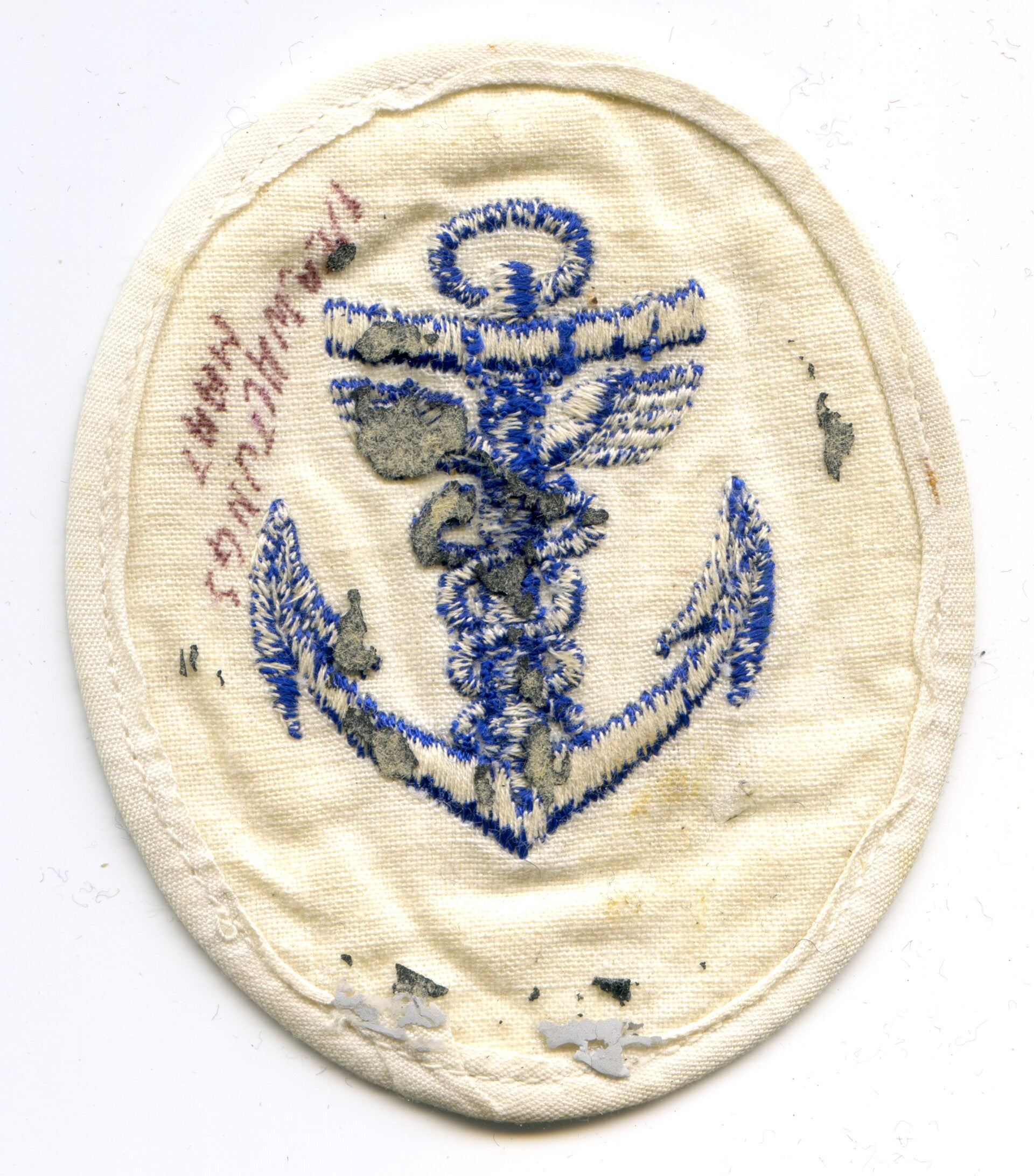 A very nice Kriegsmarine Administrative NCO's Career Sleeve Badge (Verwaltungsmaat Laufbahnabzeichen). The badge is made out of machine embroiderd cloth and remains in an excellent condition. The badge is white of colour as intended for the summer uniform. Excellent NCO career badge. No repairs, no damage.