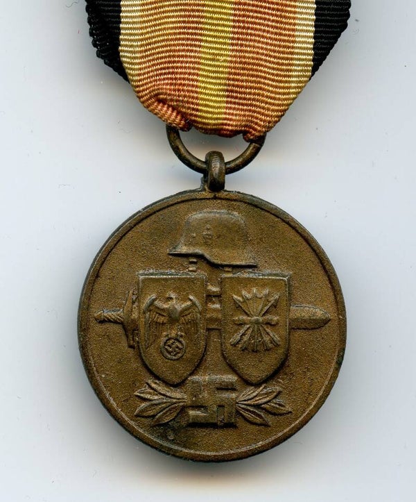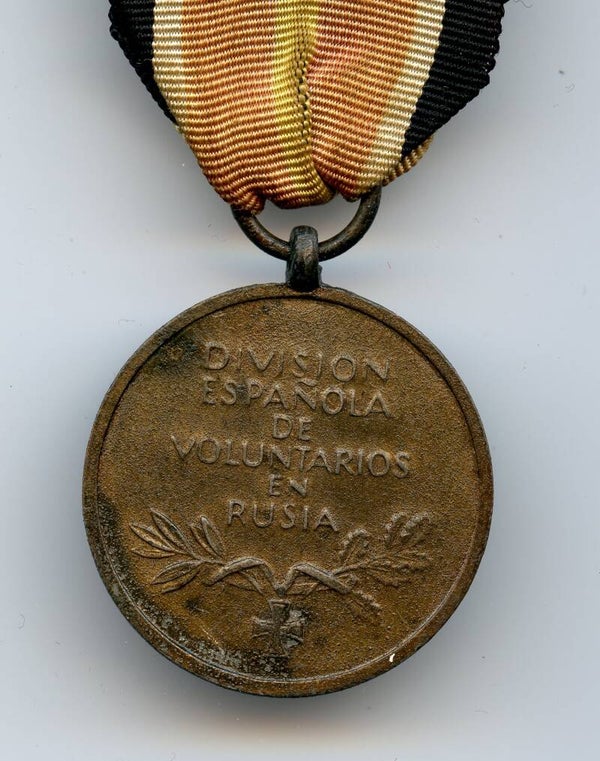 Nice Spanish volunteer medal by Deschler & Sohn, München. Zinc construction. Maker marked on the ring with "1" indicating production by Deschler. Good condition with original ribbon. No repairs, no damage.
